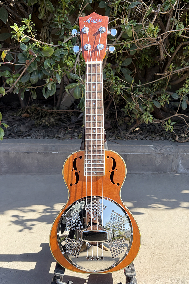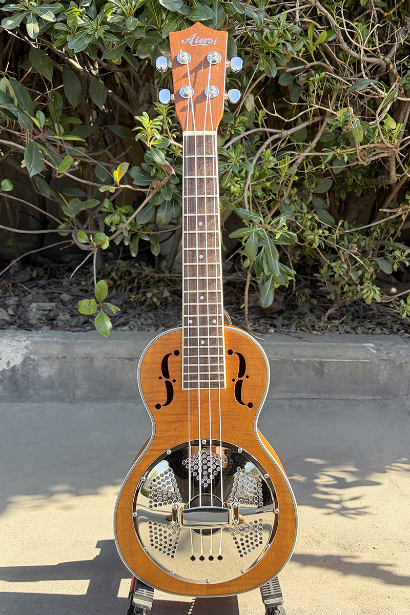 Orange Curly Okoume 26 Inch Tenor Resonator Ukulele