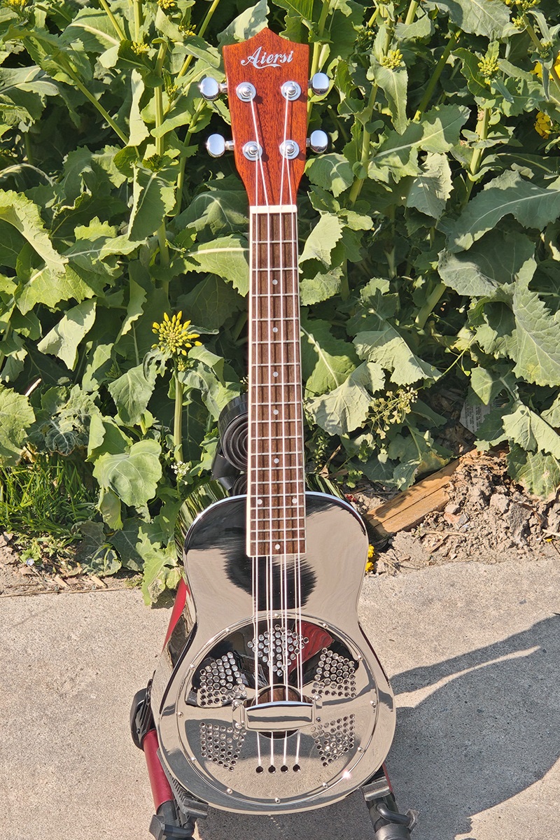 Reso-Uke Glossy Chrome Concert Body Long Neck Tenor Brass Resonator Ukulele Model: BSU004L by devon 1 Minute