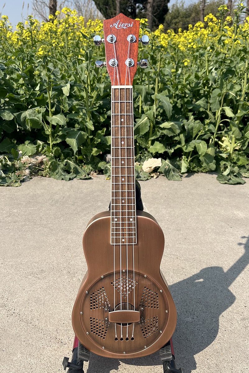 Reso-Uke Vintage Red Copper Concert Body Long Neck Tenor Brass Resonator Ukulele Model: BUS003L by devon 1 Minute